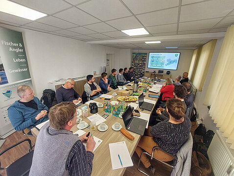 Im Gespräch wurde zunächst die Projektidee erläutert und der aktuelle Stand des Projektes an den vier ausgewählten Gewässerabschnitten vorgestellt. Diesen Part übernahm Daniel Schmidt, Geschäftsführer der Firma „team ferox“, die dem Landesverband als externer Dienstleister bei der Umsetzung des Projektes zur Seite steht.